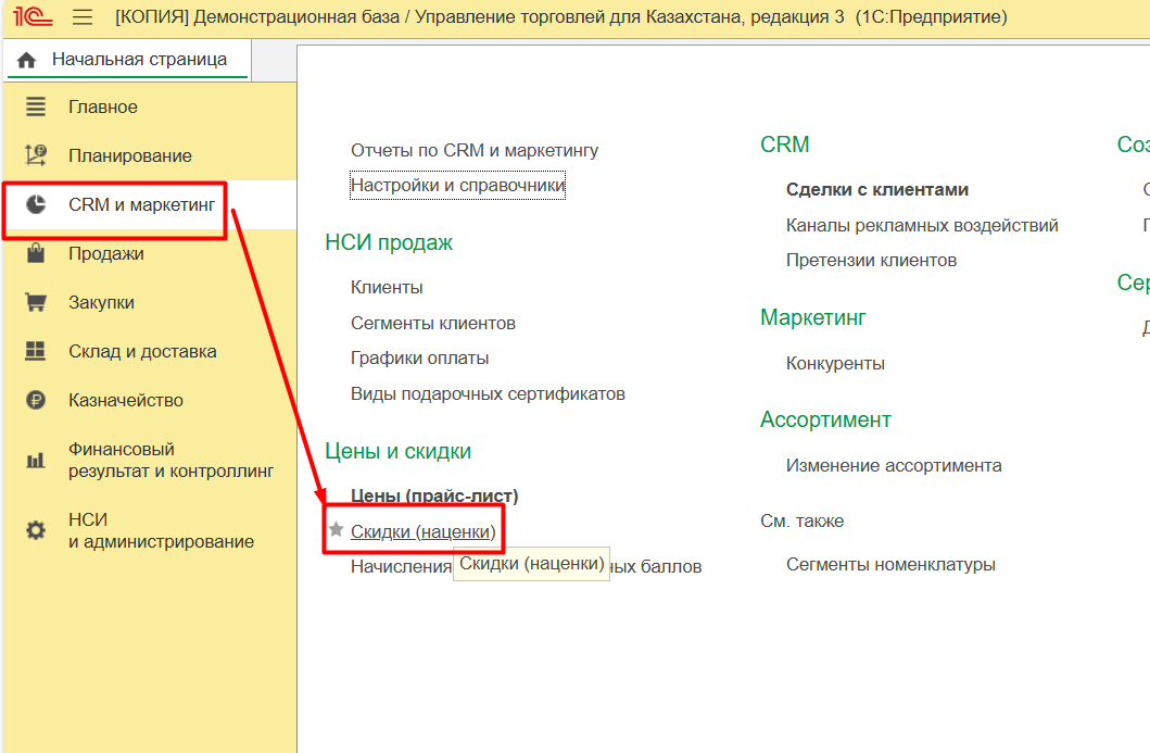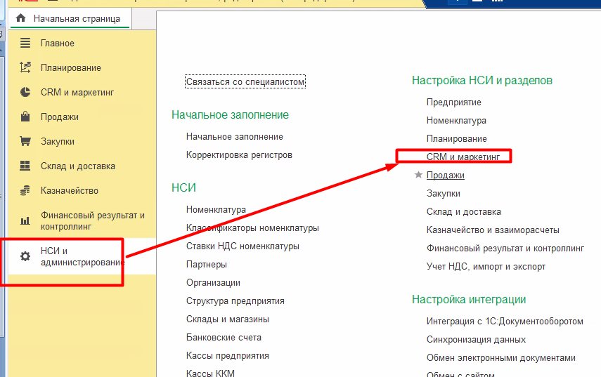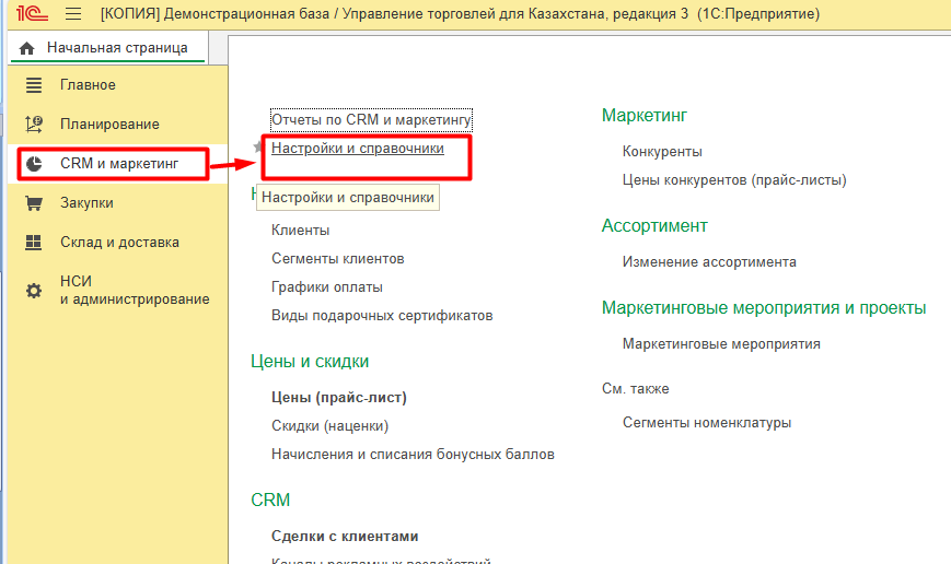 1. Настройка блока маркетинга в конфигурации 1С УТ