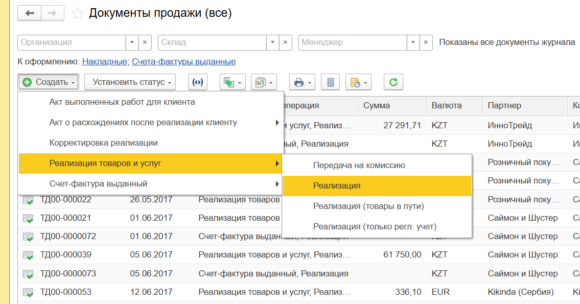 Создадим реализацию товаров клиенту. Так как мы уже подробно рассматривали этот процесс, описывать его не будем.