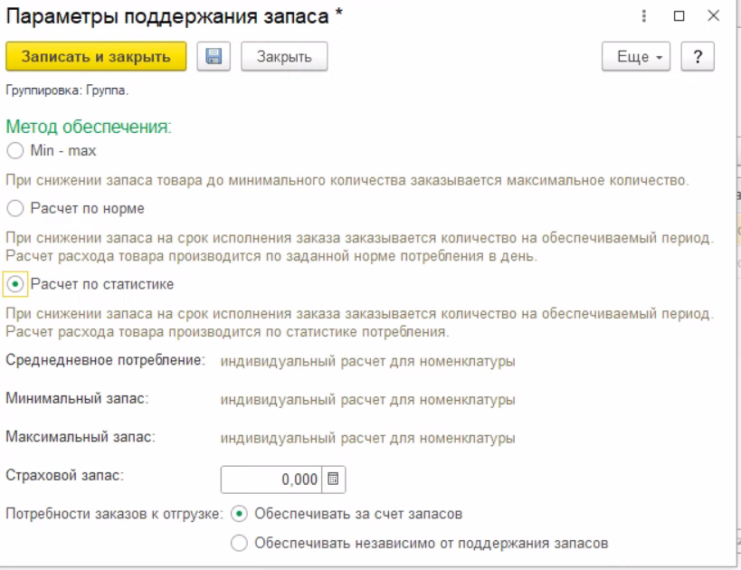 • Расчет по статистике – в данном методе расчет среднедневного потребления производится автоматически, но также есть возможность указать страховой запас.