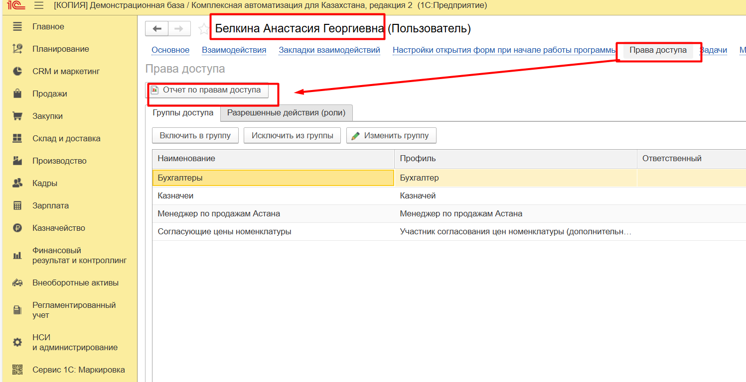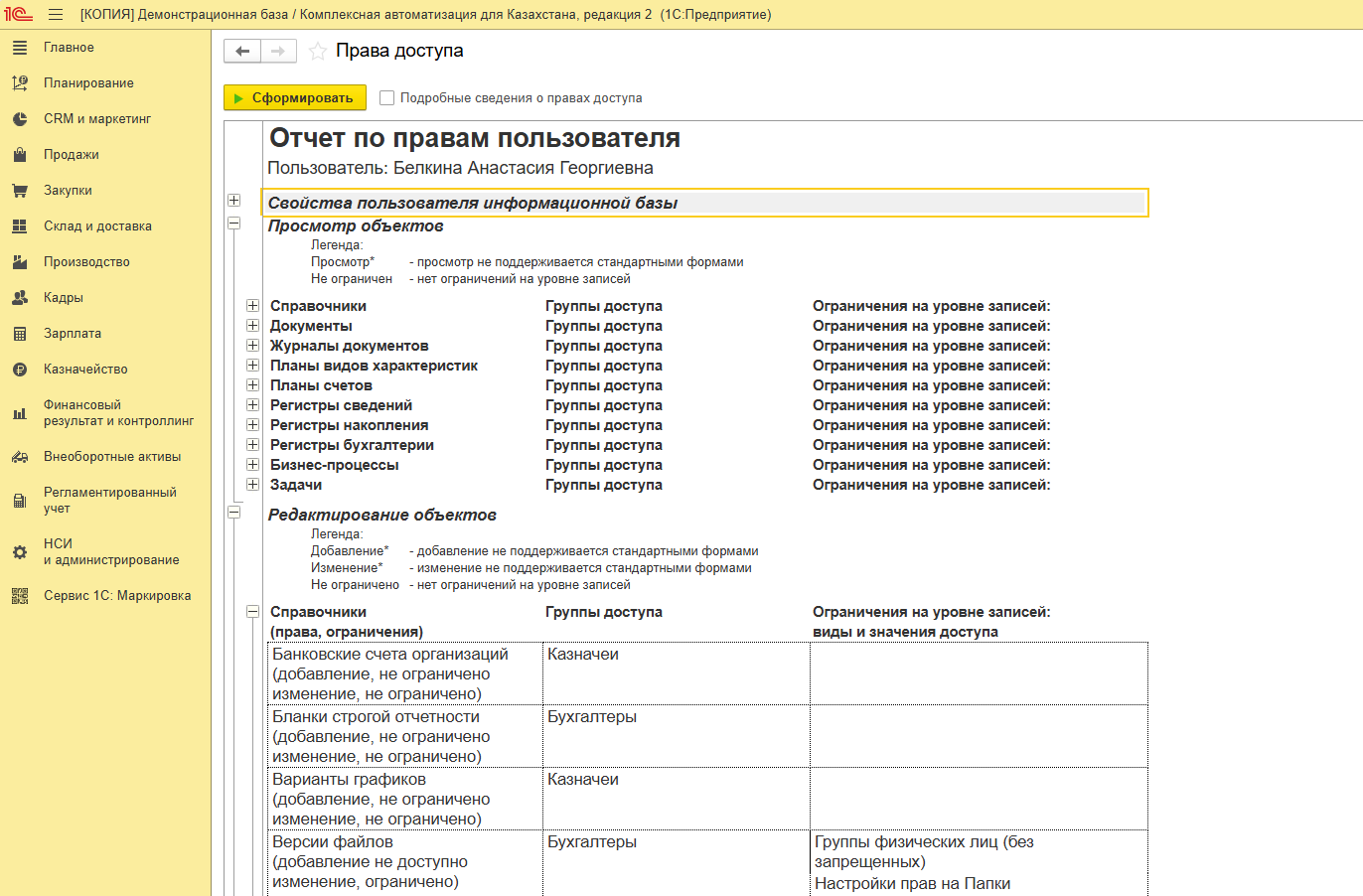 3. Анализ прав доступа в 1С: КА для Казахстана