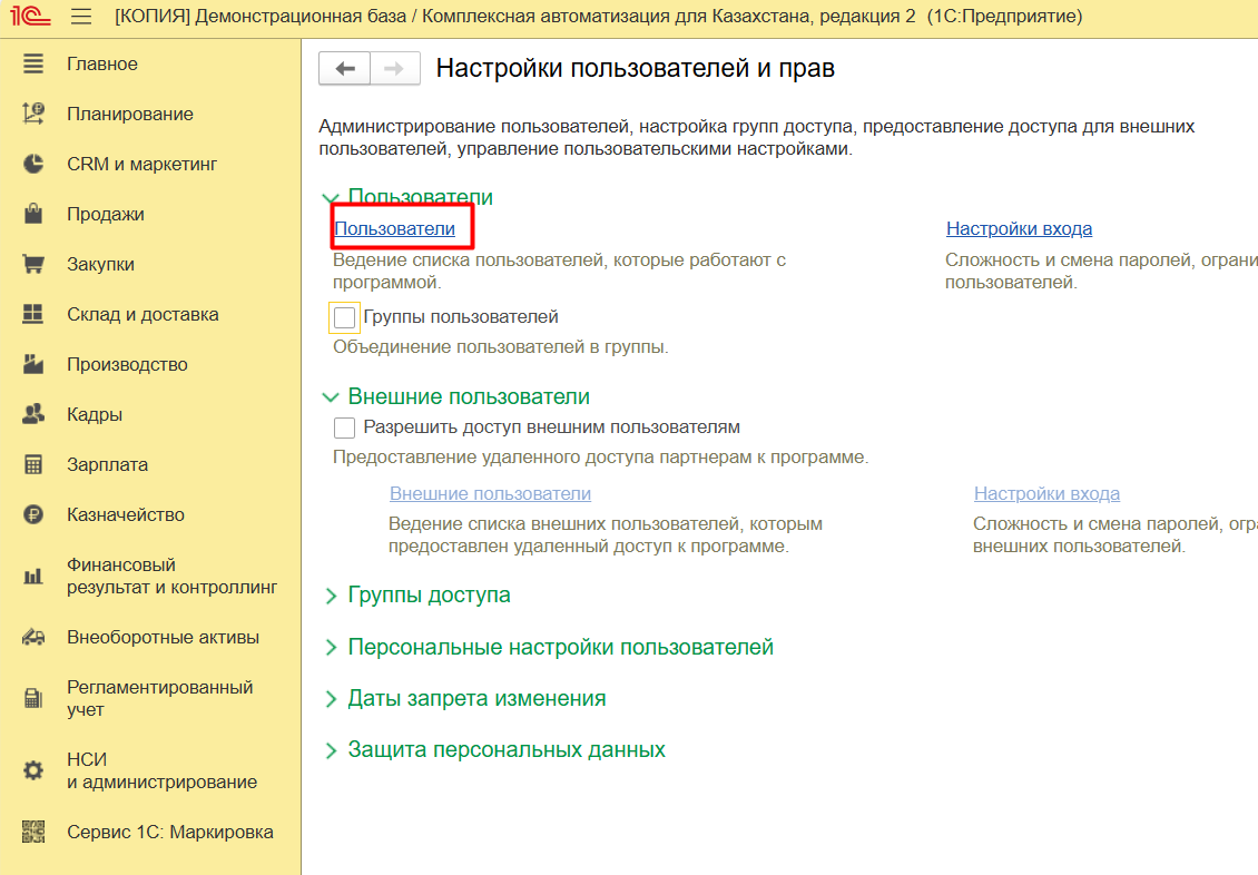 В этой статье мы рассмотрим основные аспекты настройки прав доступа в программе 1С: Комплексная автоматизация для Казахстана.