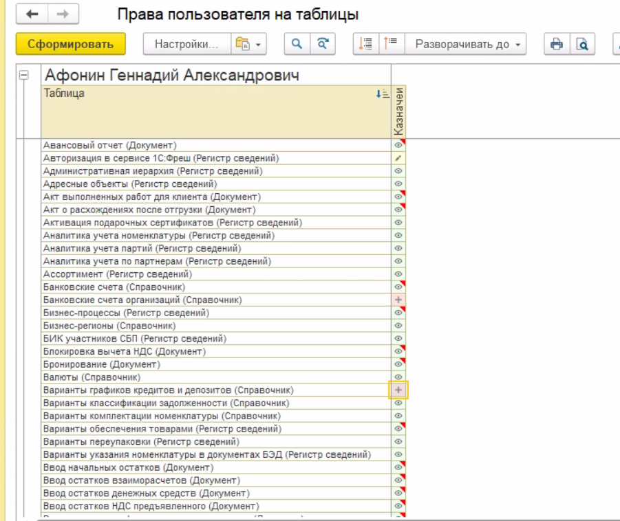 2. Описание отчета по анализу прав по пользователям в 1С:Управление торговлей для Казахстана