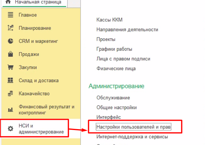 В 1С: УТ настройка прав выполняется через следующие элементы: