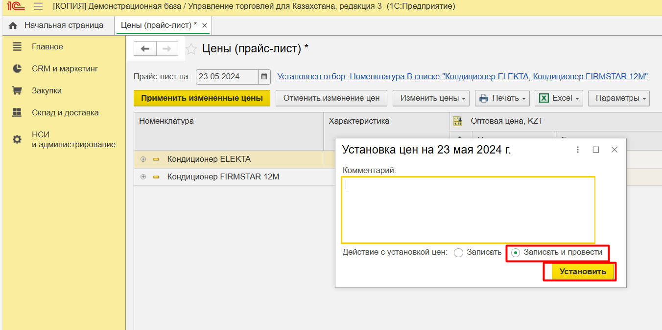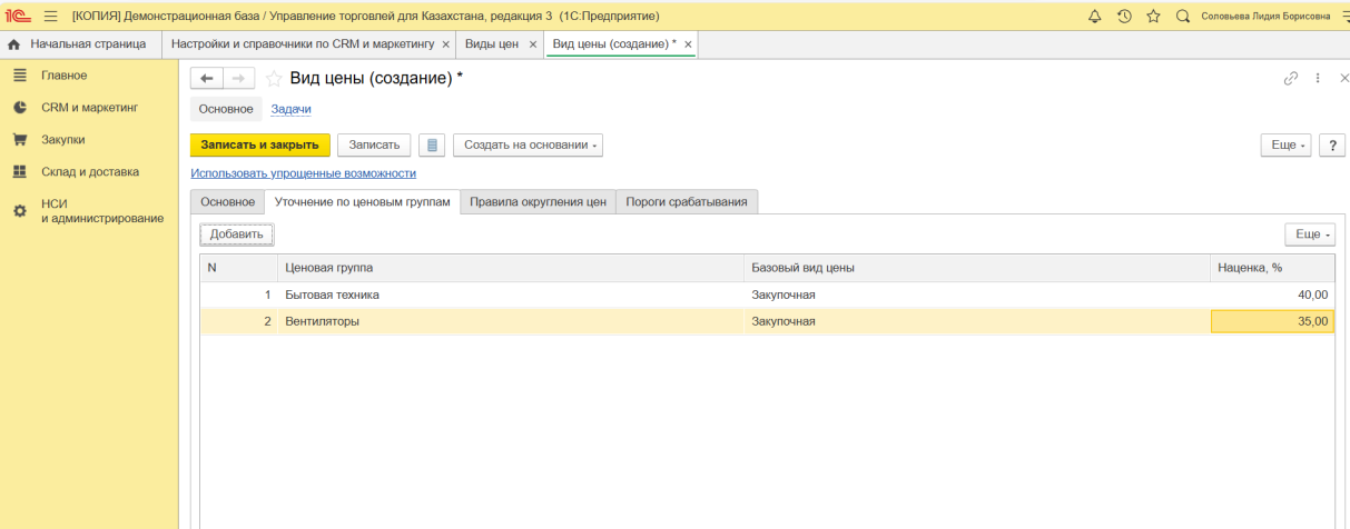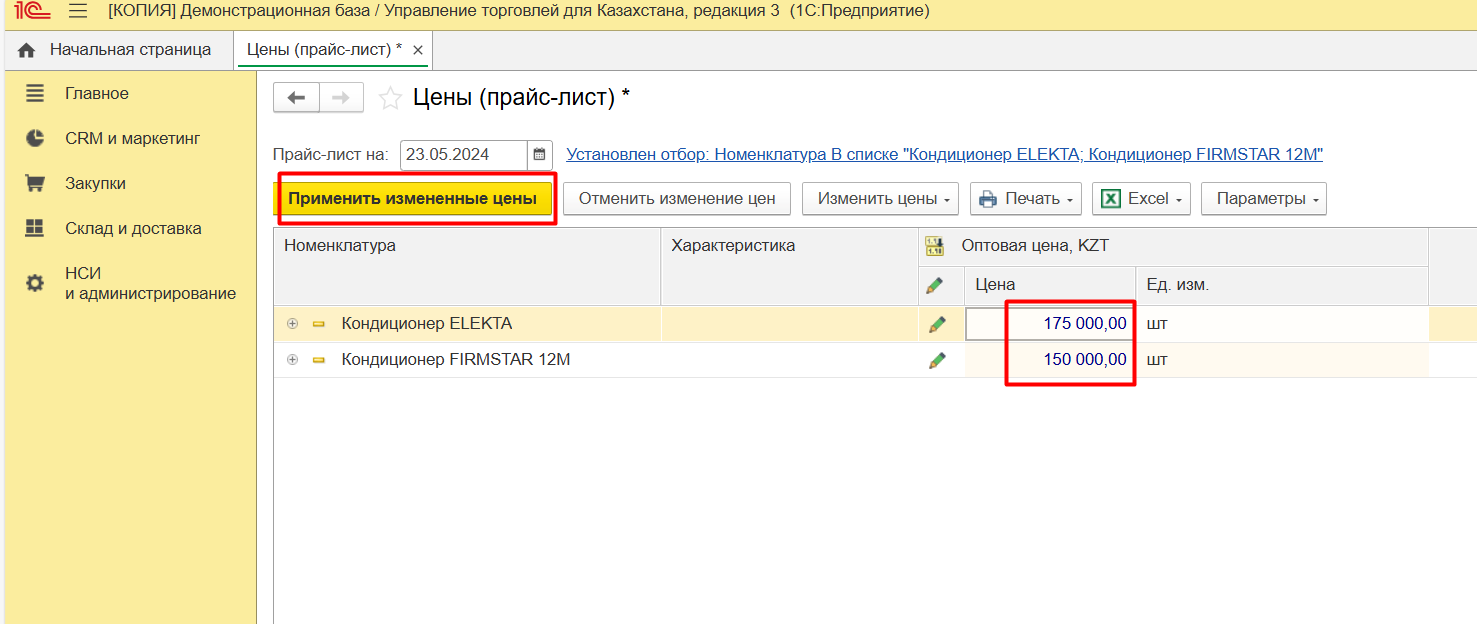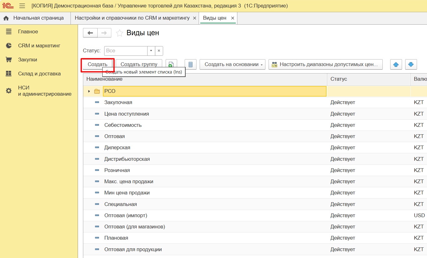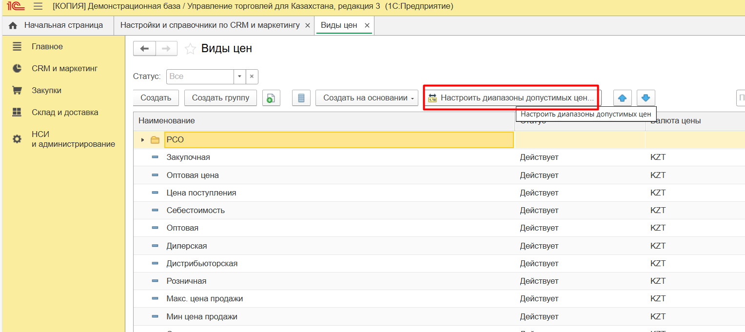 2. Установка цен на товары в 1С: УТ 3 для Казахстана