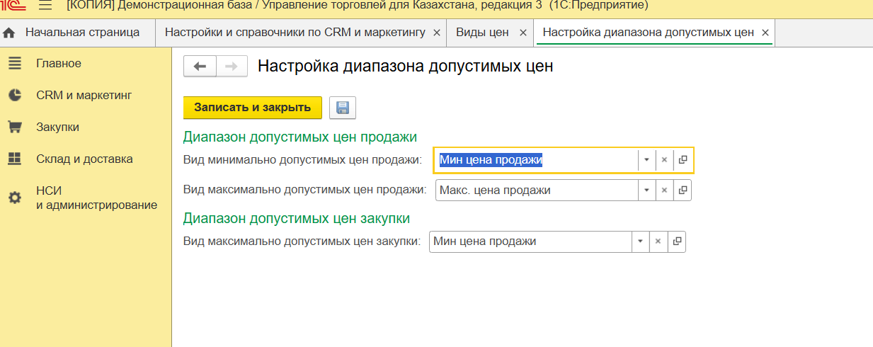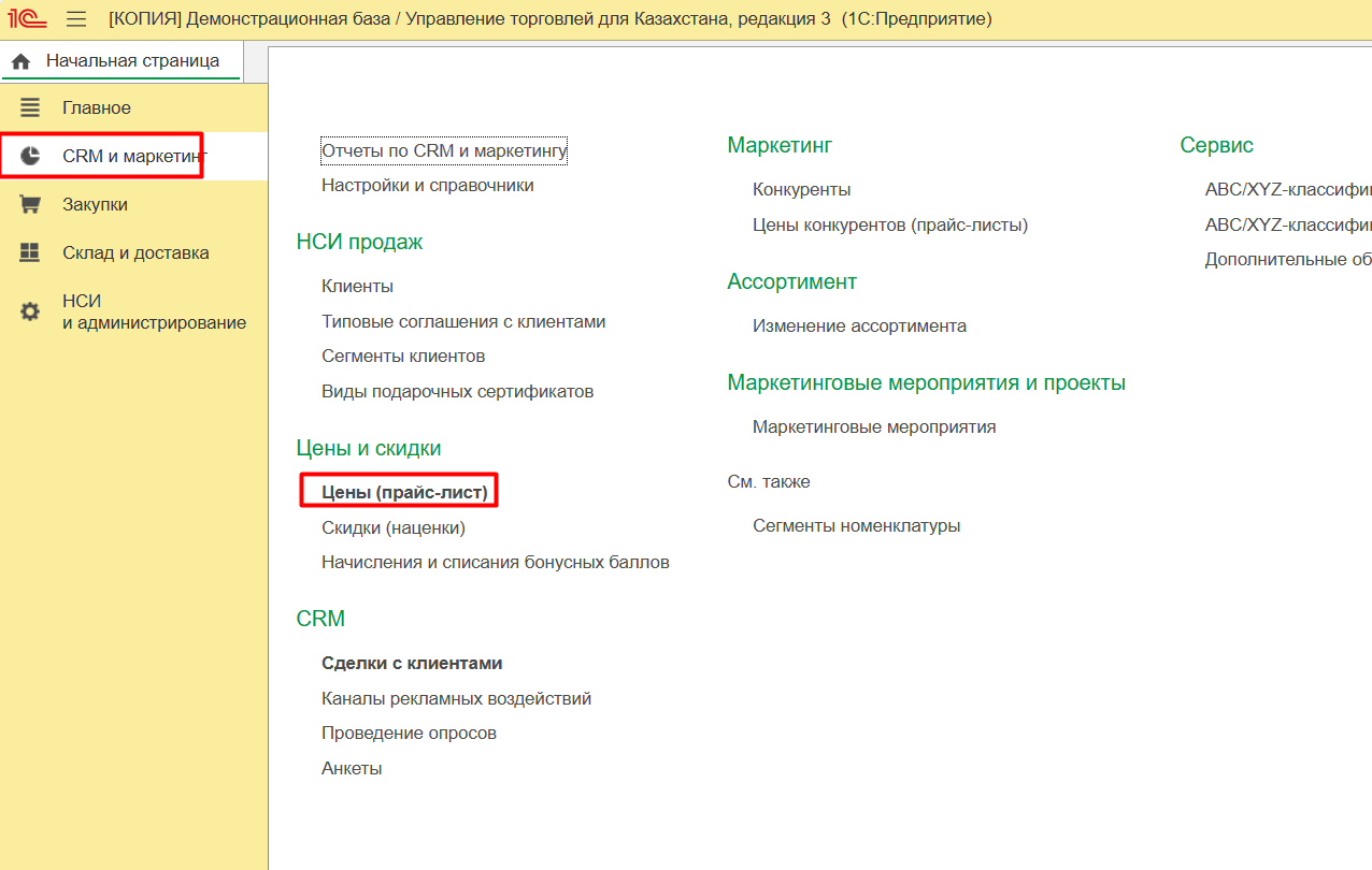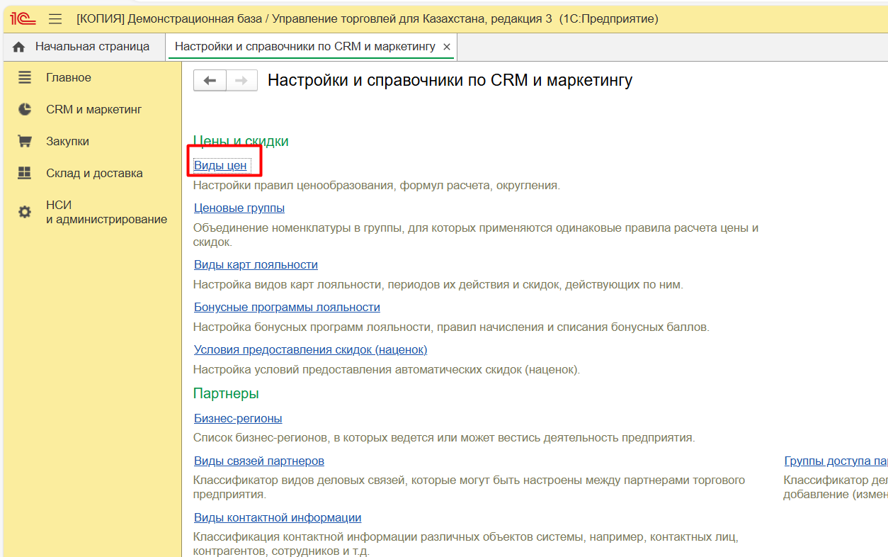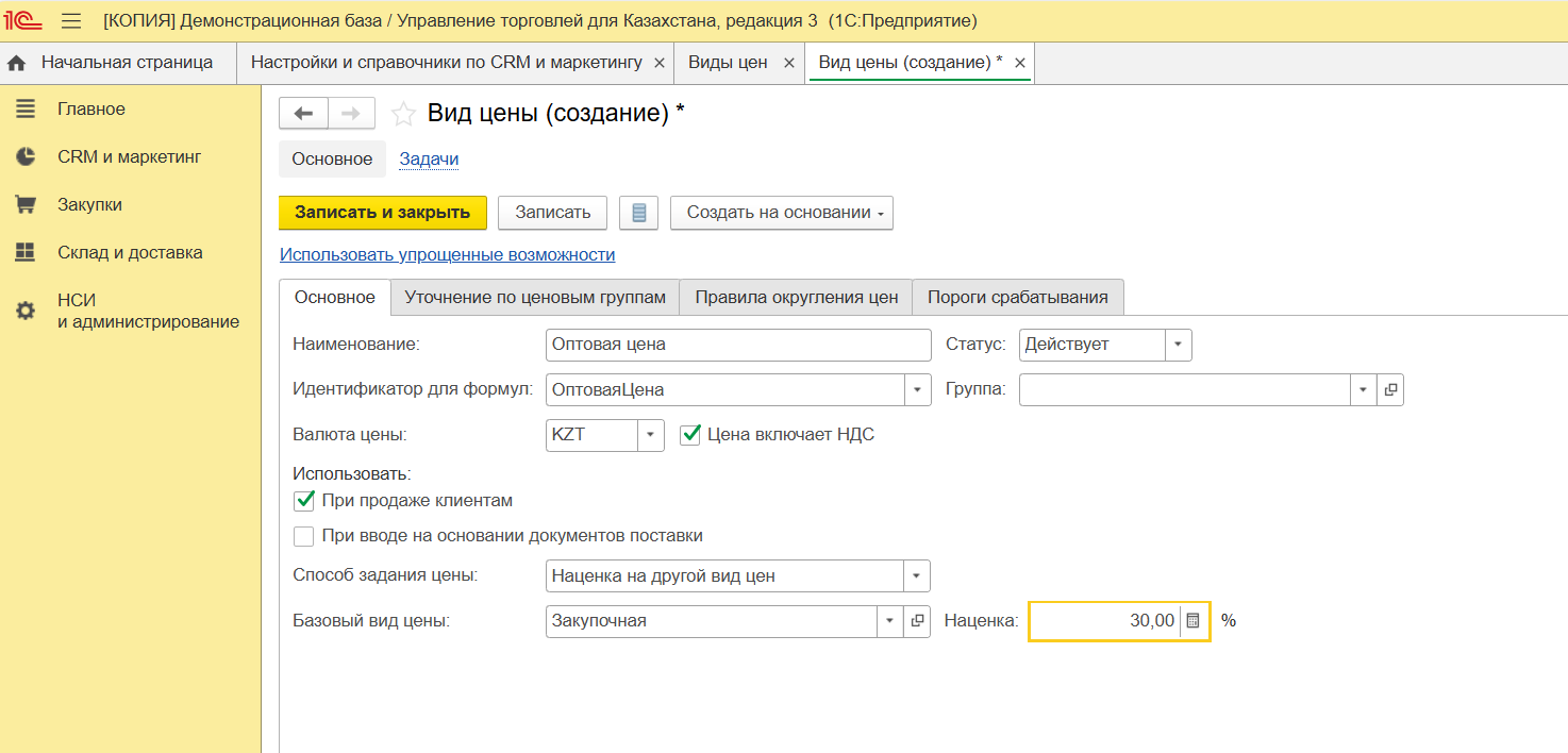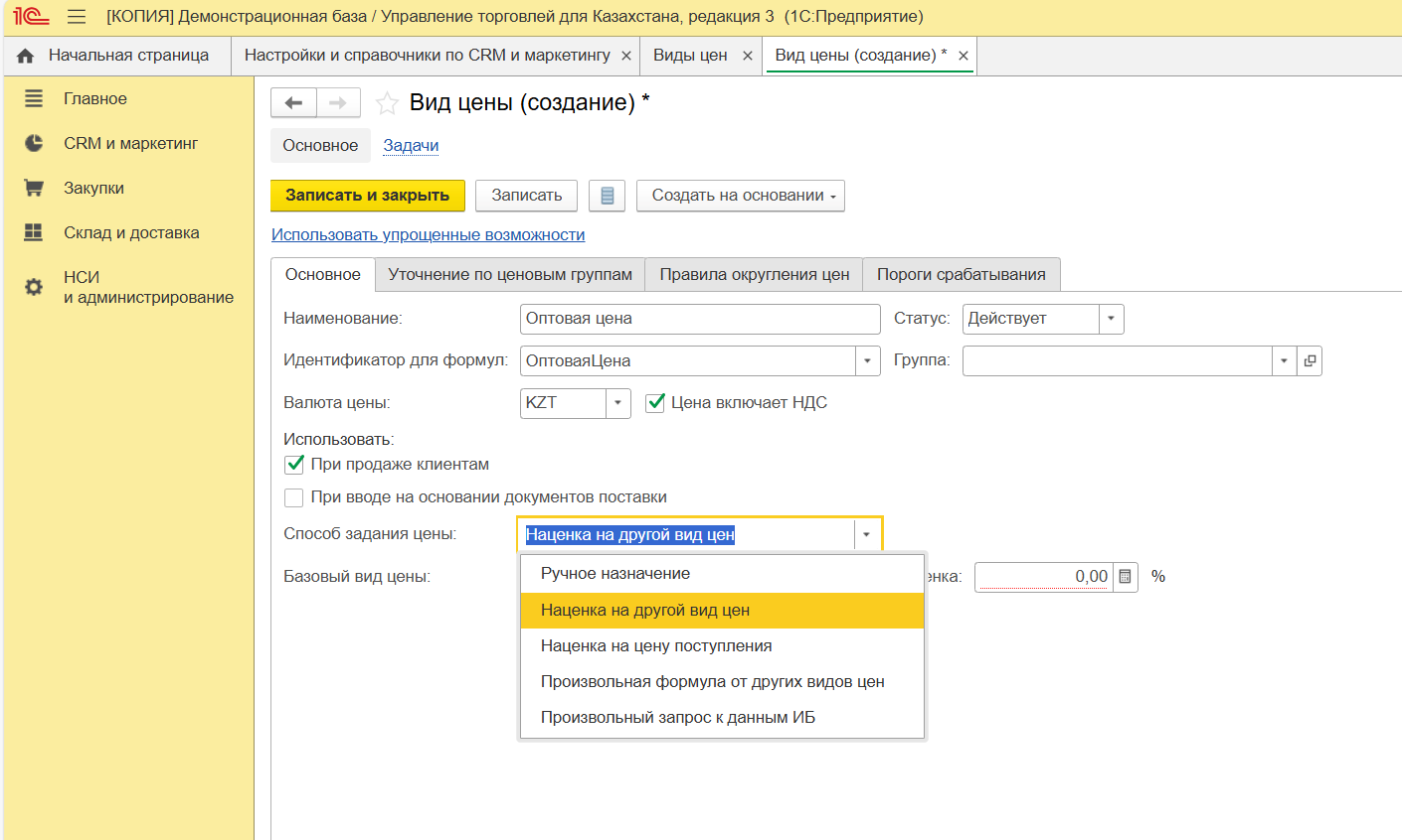 1. Настройка ценообразования в программе 1С: Управление Торговлей для Казахстана