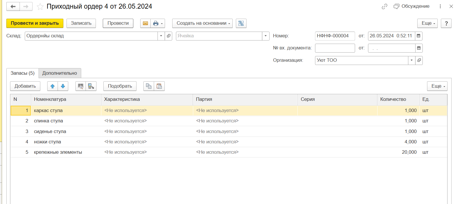 2. Ордерная схема закупок в конфигурации 1С: УНФ для Казахстана