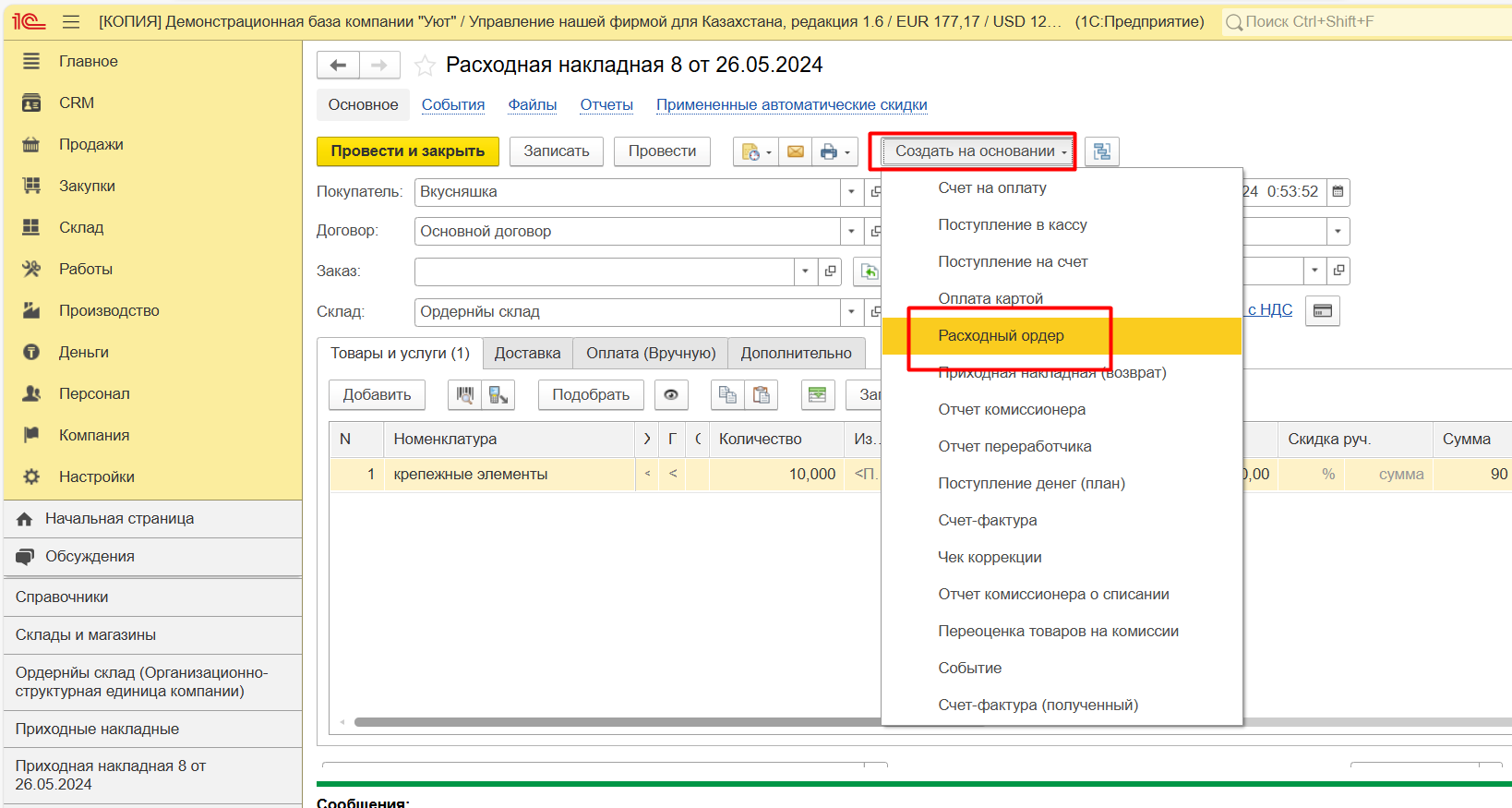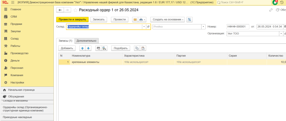 3. Ордерная схема продаж в конфигурации системы 1С: УНФ для Казахстана
