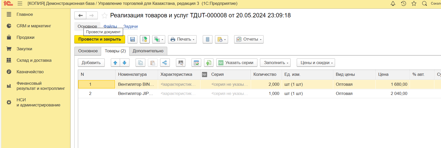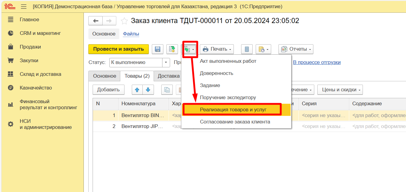 Переходим к демонстрации ордерного документооборота при оформлении продажи.