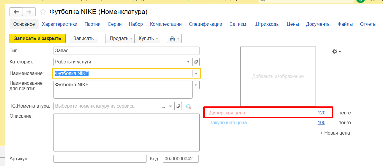 Проверяем установку цен в карточке товаров в 1С, цена установилась.