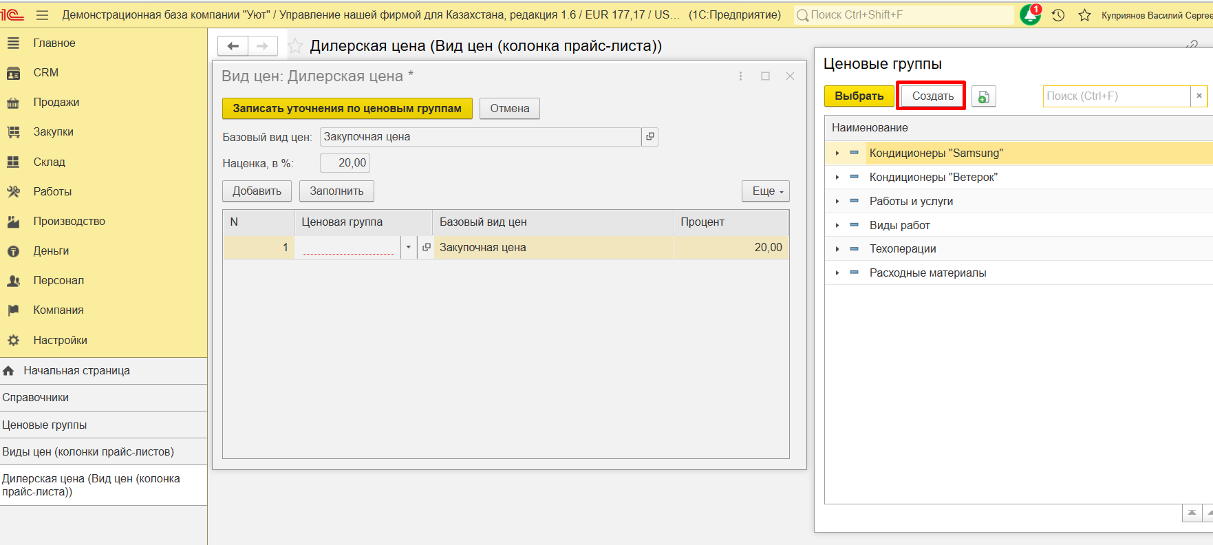 1. Настройка ценовых групп в 1С УНФ для Казахстана