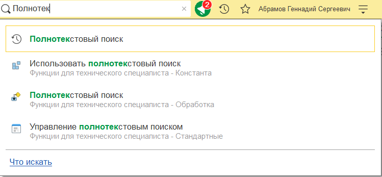 1. Как использовать полнотекстовый поиск в системе 1С: Бухгалтерия