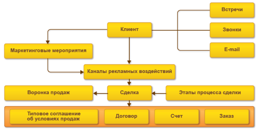 Общая схема сделки в 1С: ERP для Казахстана выглядит так: