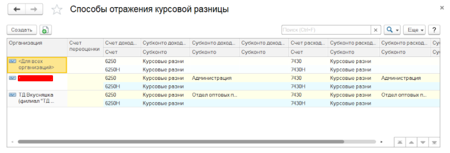 Замечание: стоит отметить, что если внутри регистра сведений «Счета с особым порядком переоценки» нет настроек для счёта, то валютные средства и, соответственно, курсовые разницы в 1С, будут рассчитаны во время выполнения каждой конкретной операции.