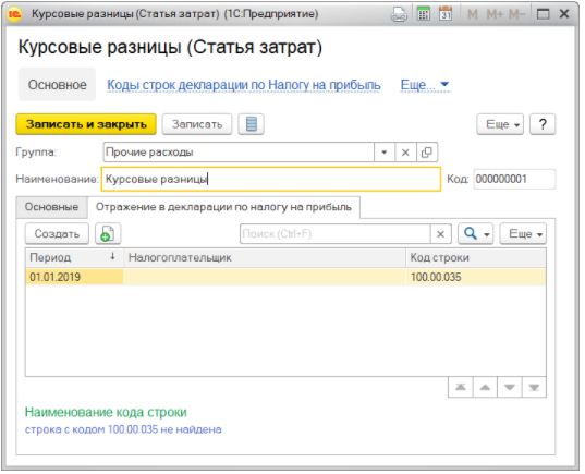 2. Далее, запускаем справочник «Статьи затрат для элемента курсовые разницы». В нём, необходимыми, в первую очередь, являются коды по строкам, которые сопоставляются с конкретными декларациями на конкретный момент, актуальный. Примеры таких кодов и справочника отображены ниже:
