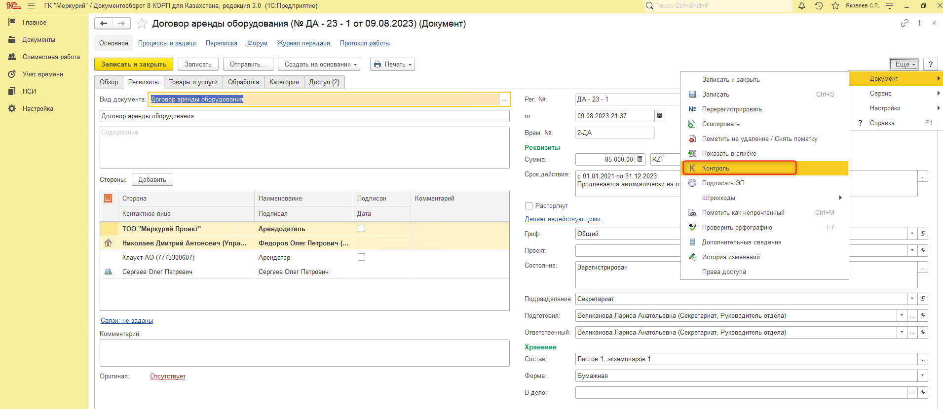 1. Возможности системы 1С: Документооборот 8 КОРП для Казахстана