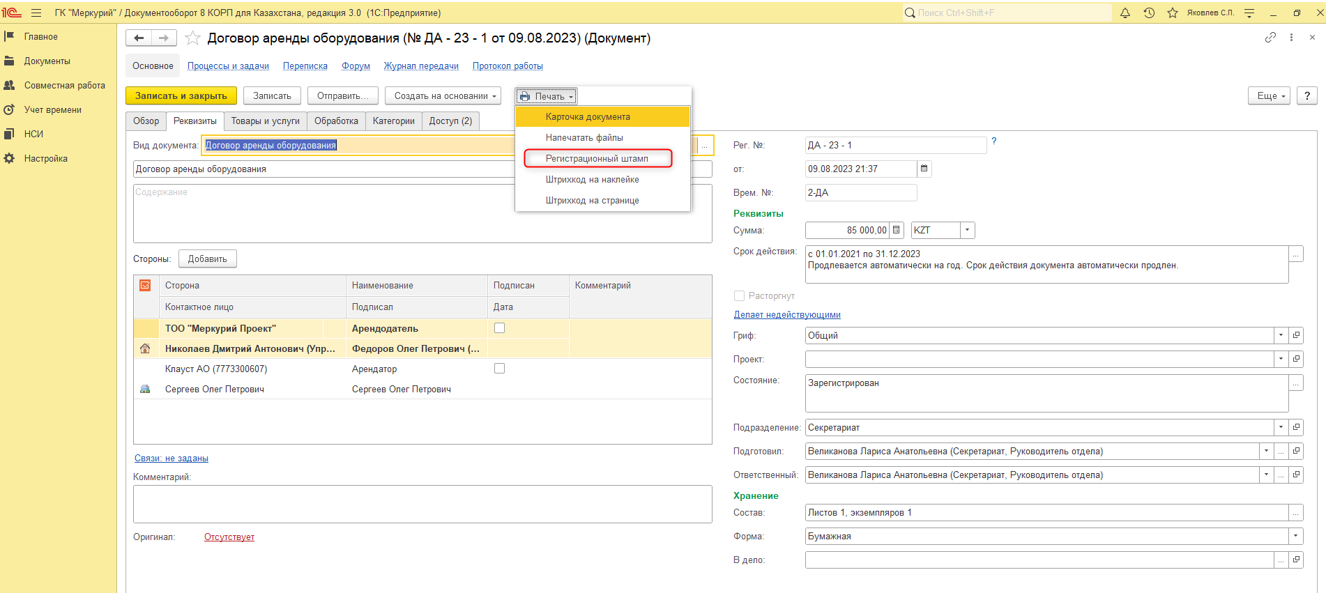 Внедрение 1С: Документооборот 8 КОРП для Казахстана в вашем бизнесе позволит вам полностью отказаться от ручного ведения регистрации документов. Программа автоматически создает уникальные регистрационные номера, исключая возможность дублирования и обеспечивая четкость в учете.