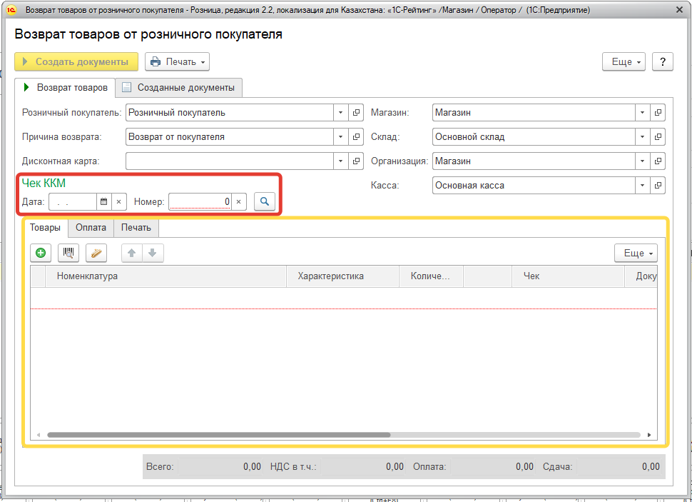 Во вкладке оплата вводим сумму и вид оплаты, нажимаем создать документы.