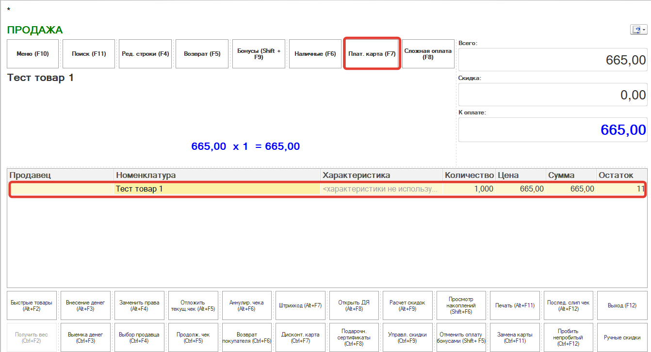 Сканируем товар сканером, вводим через поиск или через кнопку штрихкод. После нажимаем кнопку плат. карта.