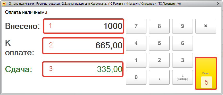 1. Сумма, внесенная клиентом (можно ввести цифровой клавиатурой).