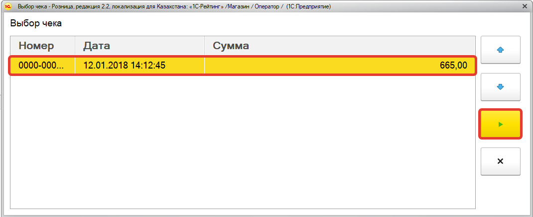 После этого выбираем чек и нажимаем на кнопку продолжить (play).