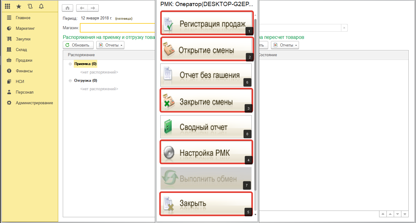 2. Открытие смены – открывается на начало дня продаж, длительность смены 24 часа.