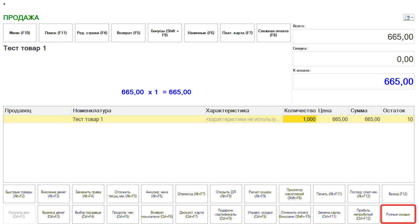 Что бы сделать ручную скидку на товар нажимаем на нижней панели кнопку «Ручные скидки».