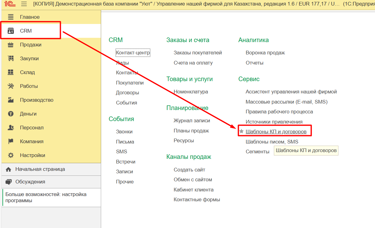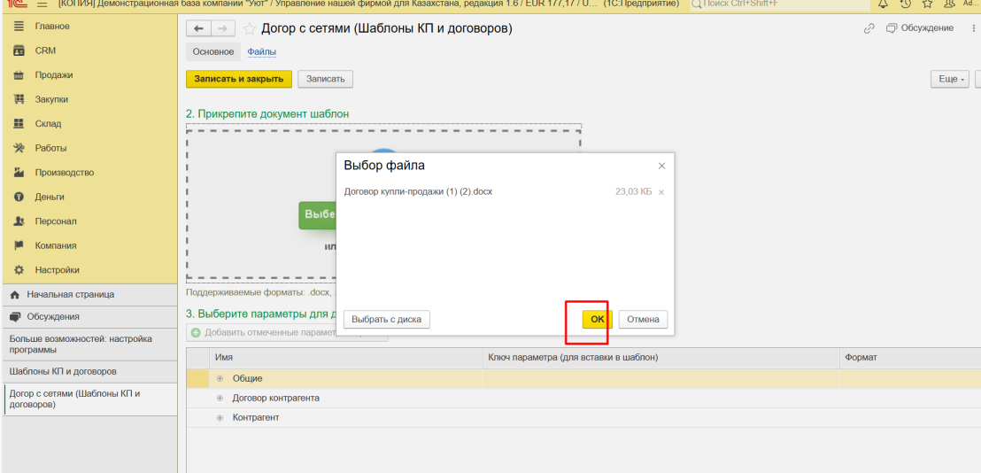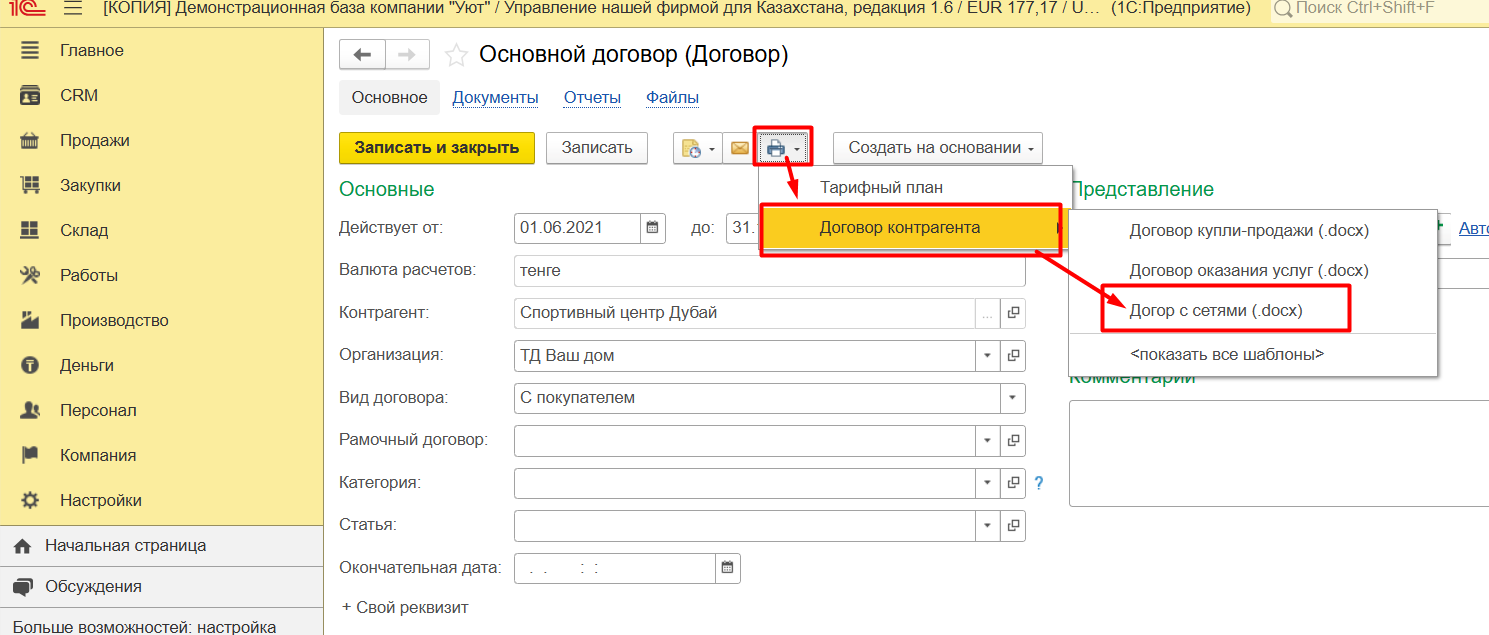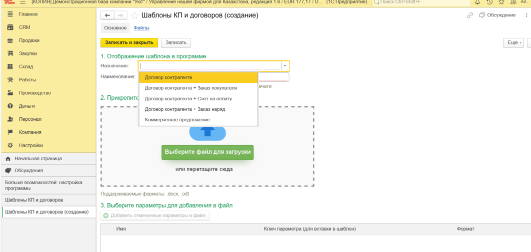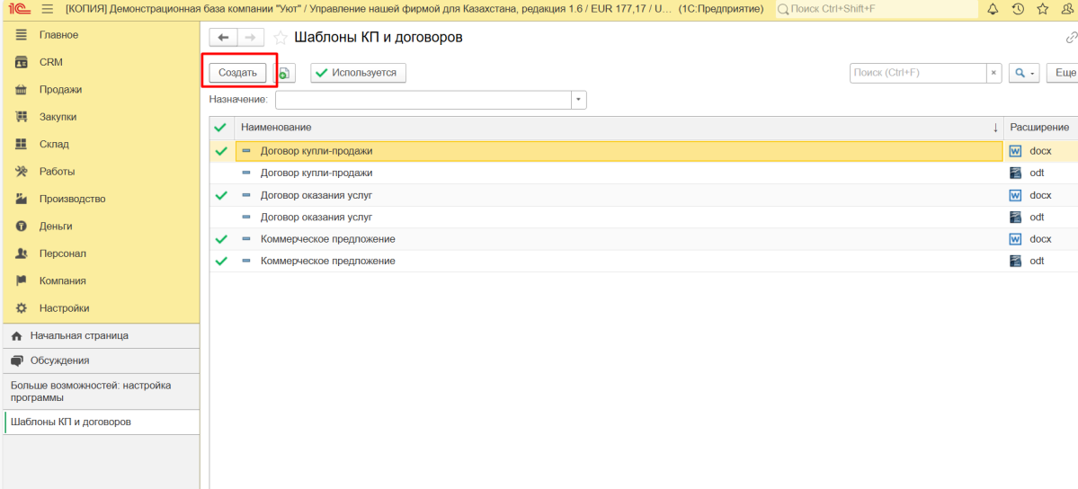 2. Шаблоны договоров в конфигурации 1С: УНФ для Казахстана