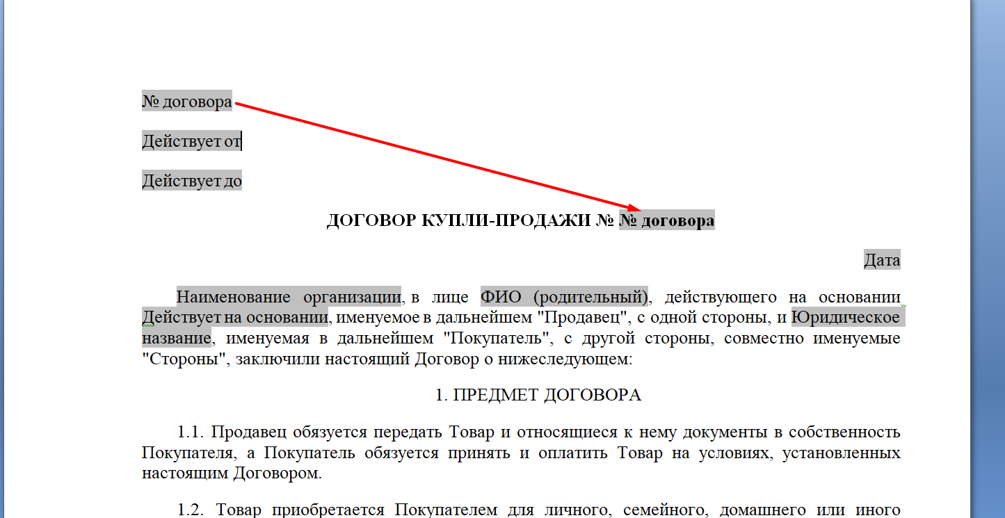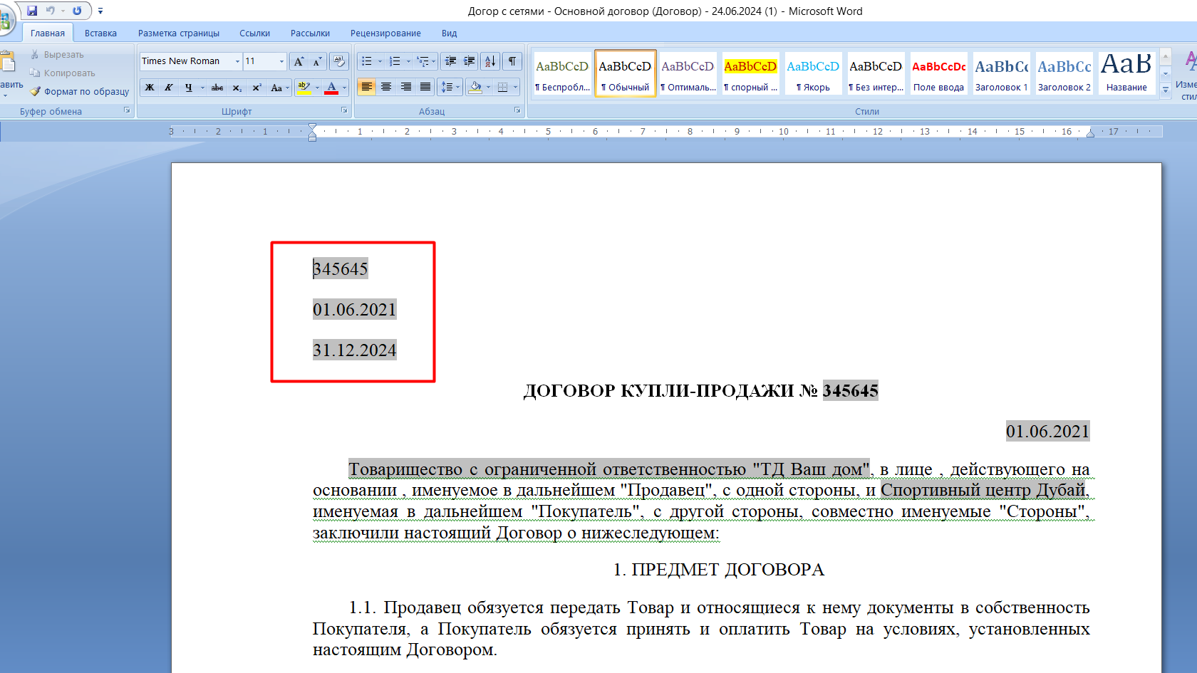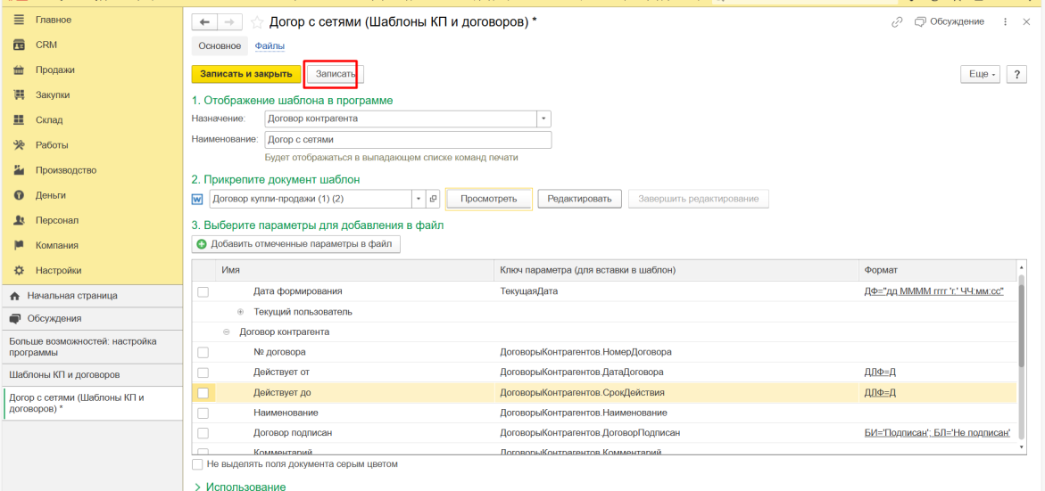 Видим, что добавленные параметры заполнились реальными данными из договора.