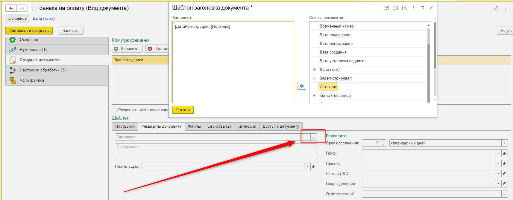 После сохранения настроек, названия документов данного типа будут автоматически генерироваться согласно установленному шаблону и не будут доступны для редактирования.