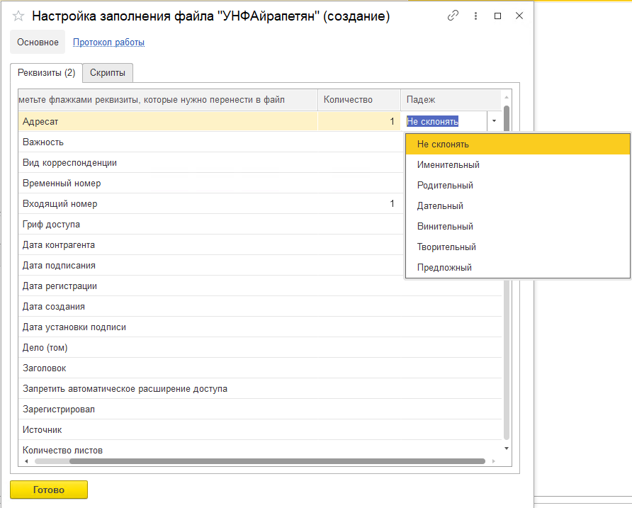 Если вы хотите добавить несколько полей для одного реквизита, просто укажите количество полей в соответствующей колонке. Если вы решите исключить определенный реквизит из сохраненной настройки, программа автоматически удалит соответствующее поле из файла.