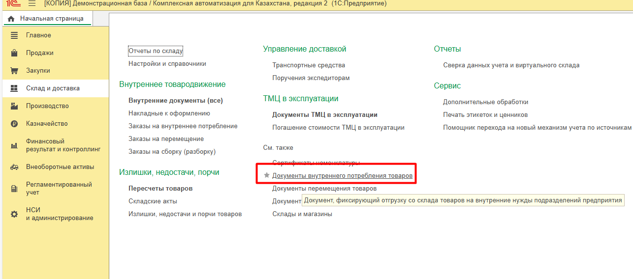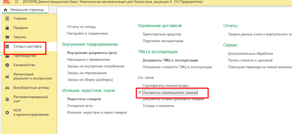 2. Складские операции в программе 1С:Комплексная автоматизация для Казахстана