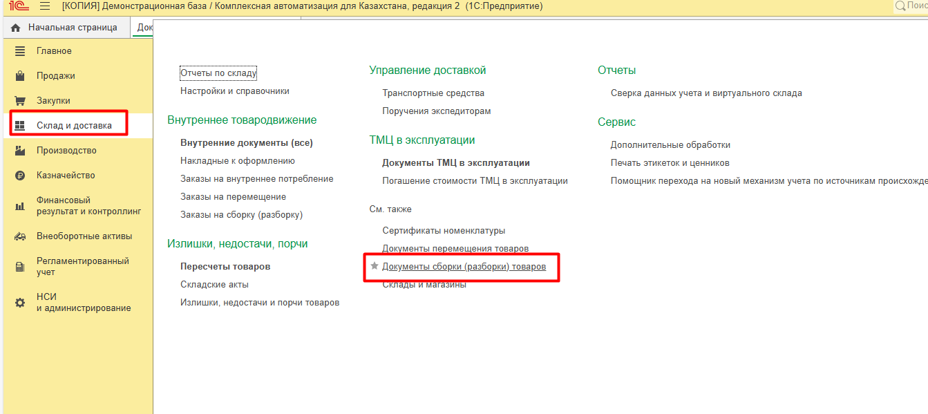 Склад и доставка, Внутреннее потребление, Сборка (разборка) товаров