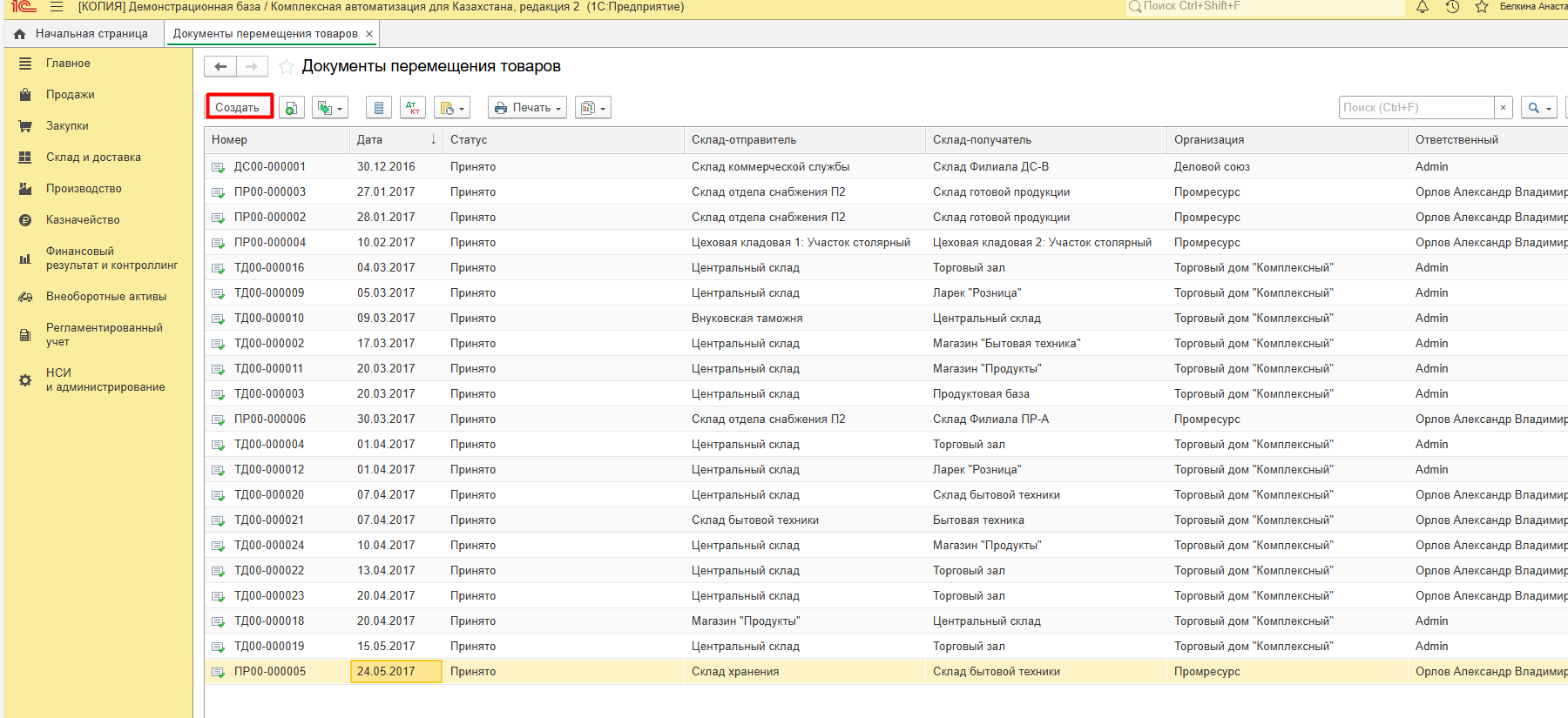 Переходим к демонстрации складских операций.