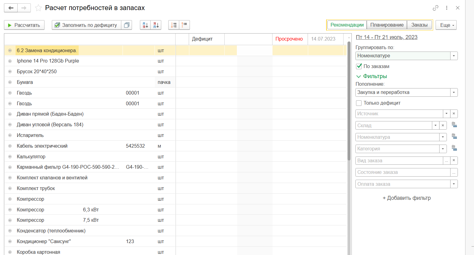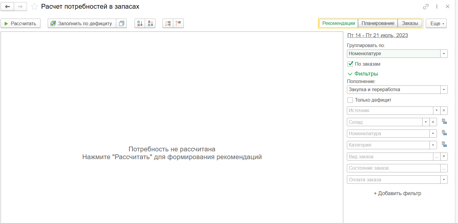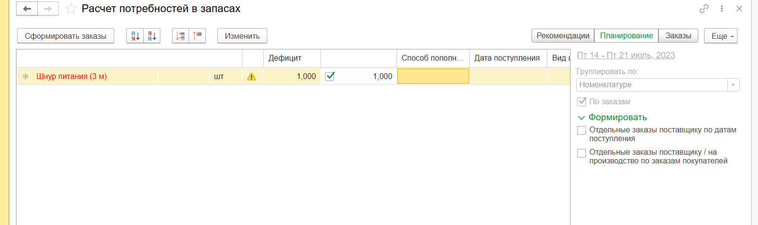 7. Расчет потребностей в запасах в 1С: Управление нашей фирмой для Казахстана