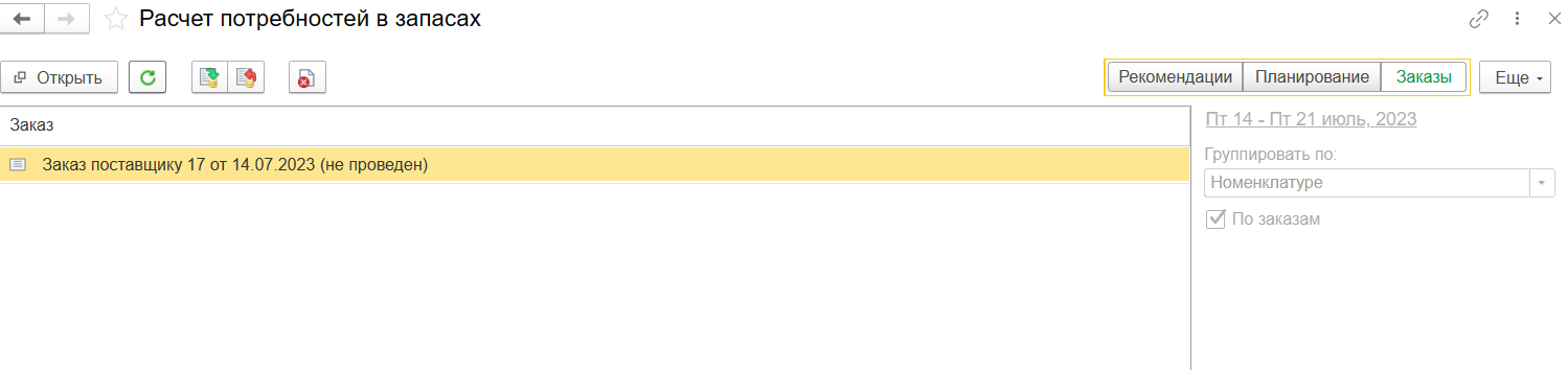 В 1С: Предприятие УНФ есть возможность расчета потребностей и формирования заказов поставщикам по этим данным.