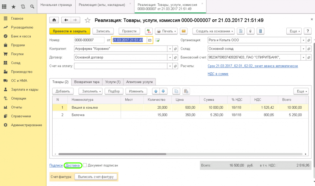4. Переходим к документу «Реализация: товары, услуги, комиссия»