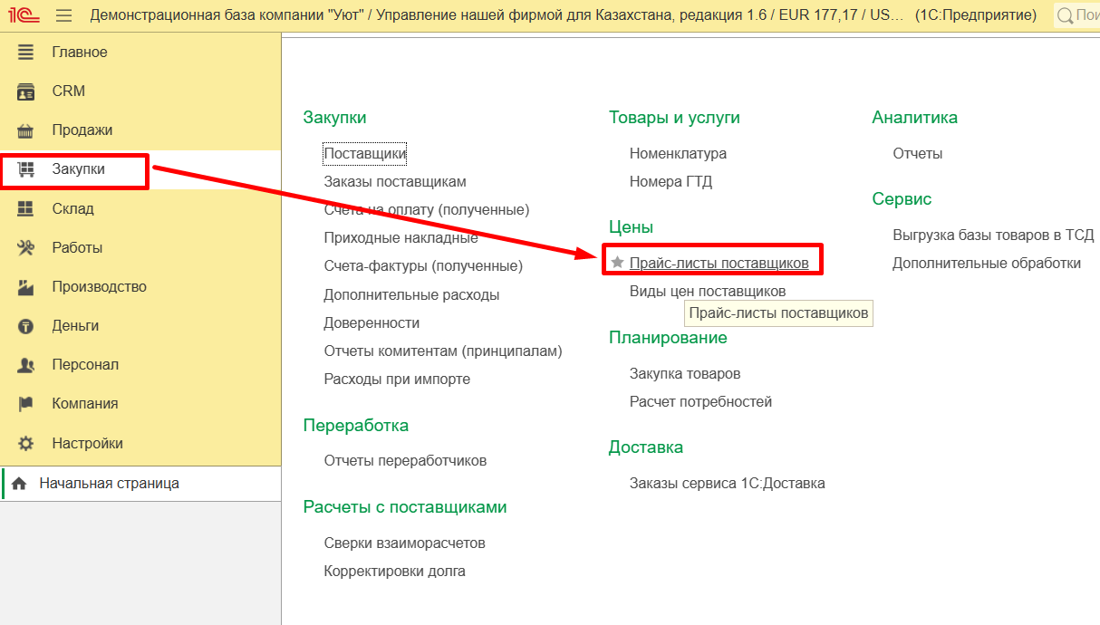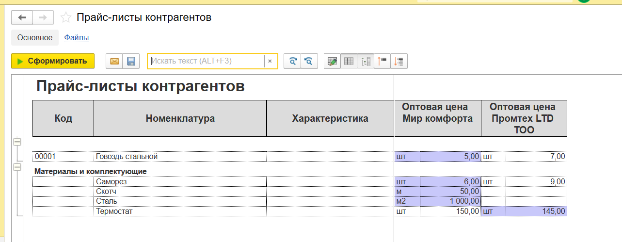 2. Как сформировать прайс-лист в конфигурации 1С: УНФ 1.6?