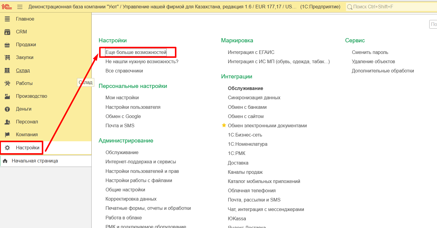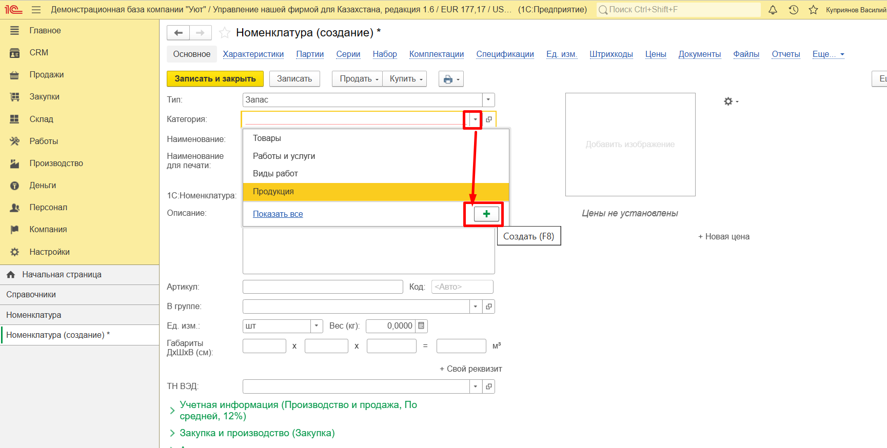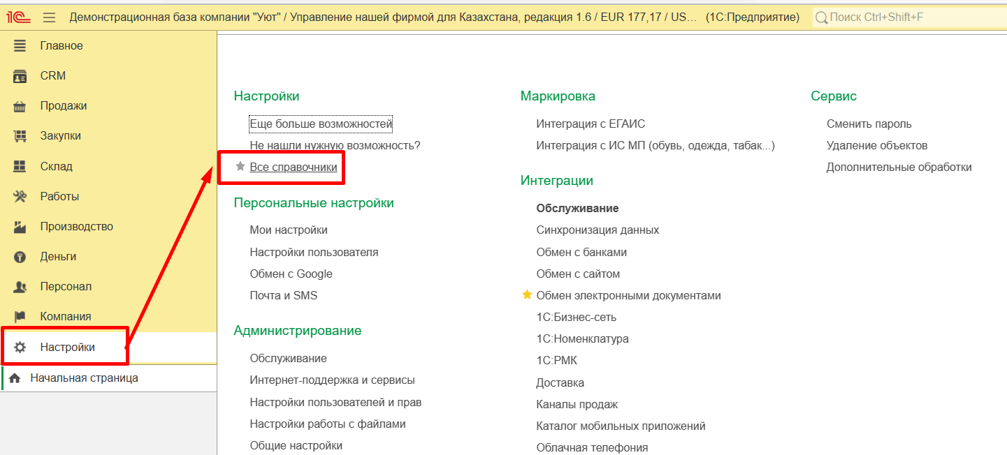 1. Настройка учета характеристик в конфигурации 1С: УНФ 1.6 для Казахстана