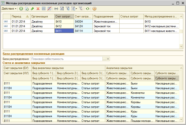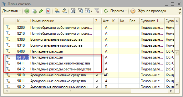 1. Счета учета для отражения косвенных расходов в конфигурации 1С: Бухгалтерия сельскохозяйственного предприятия для Казахстана