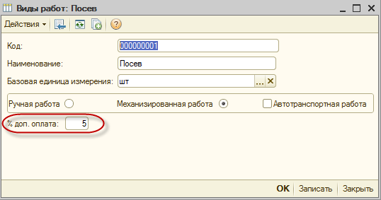 Процент дополнительной оплаты заполняется из справочника «Виды работ».