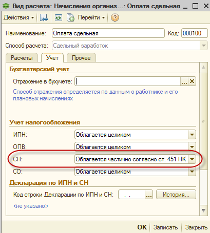 Обратите внимание: при расчете социального налога по специальному налоговому режиму для юридических лиц - производителей сельскохозяйственной продукции, учитываются виды начислений, для которых метод налогообложения СН определен как "Облагается частично в соответствии со статьей 451 Налогового кодекса Республики Казахстан".