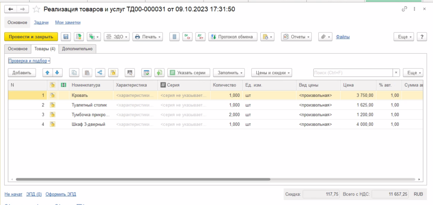 3. Регистрация розничных продаж в конфигурации 1С: ERP