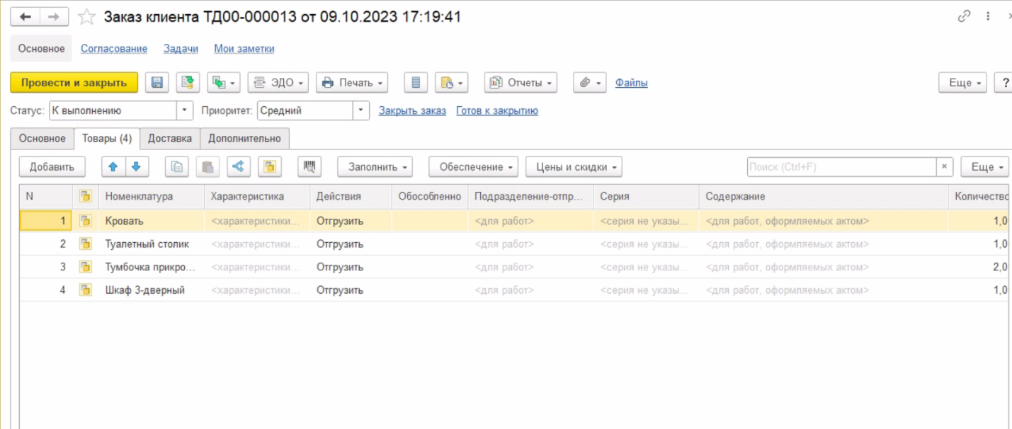Для регистрации намерения продать товар используется документ Заказ клиента. В заказе указывается: