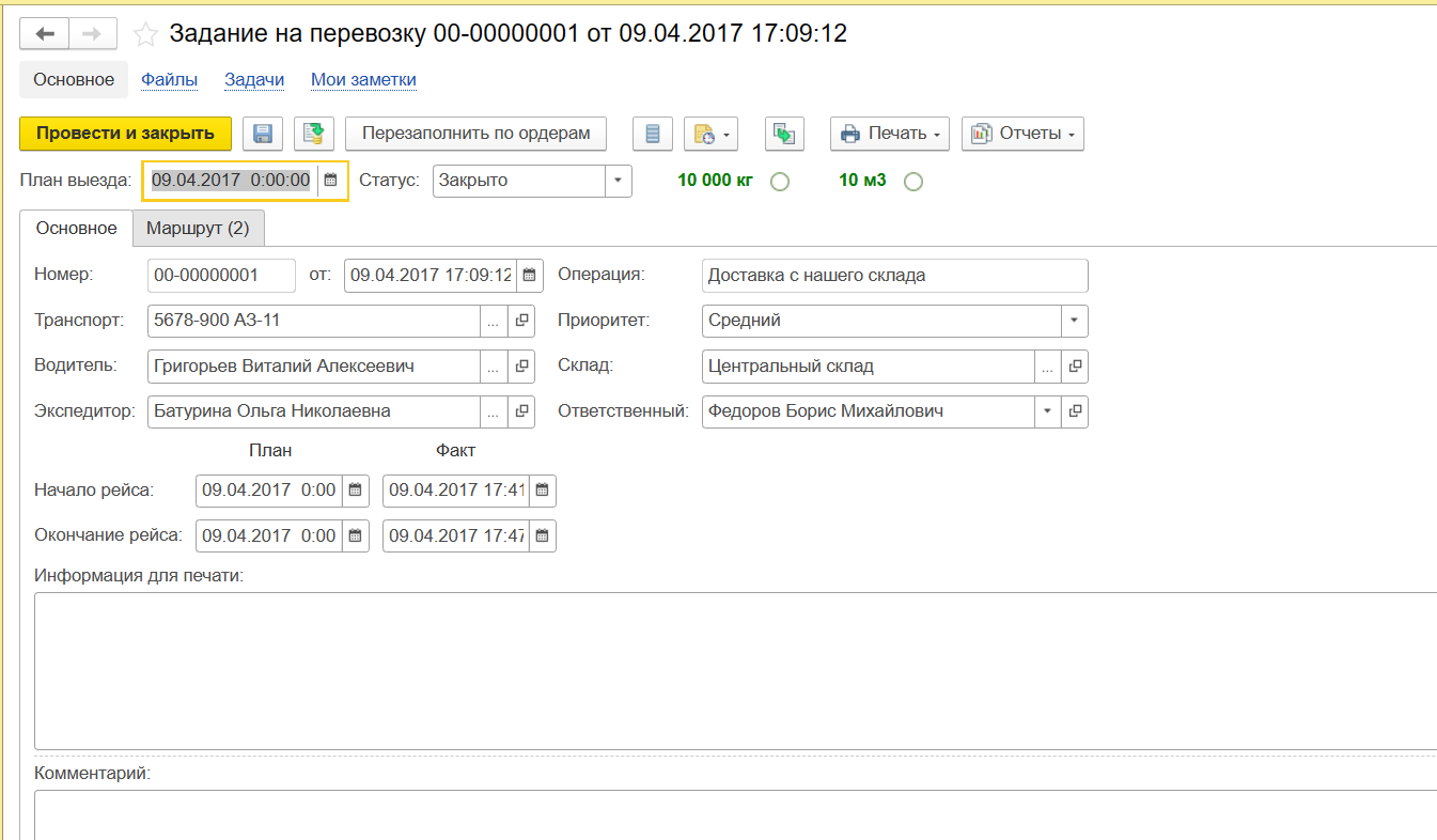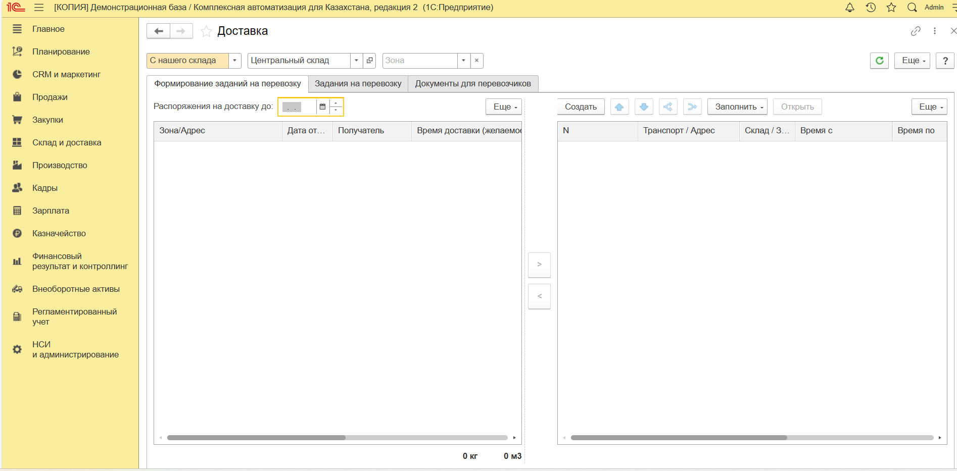 В программе есть возможность управлять доставкой. Распоряжениями для оформления доставки является документы отгрузки и приемки. На основании распоряжений на доставку создаются задания на перевозку. В котором указывается вся необходимая информация для контроля доставки.