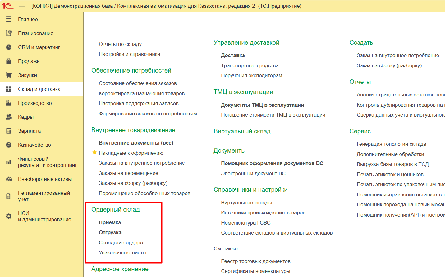 1. Ордерный склад в программе 1С: Комплексная автоматизация