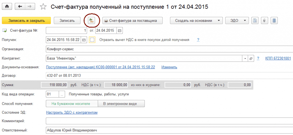 3. Принципы работы журнала счетов-фактур в 1С 8.3