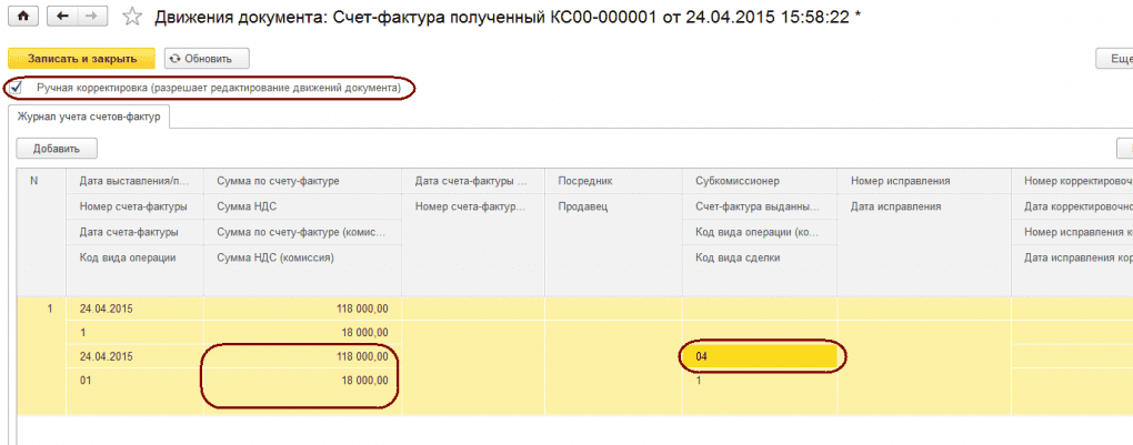 5. Отражение в журнале счетов-фактур операций от сторонних организаций в системе конфигурации 1С