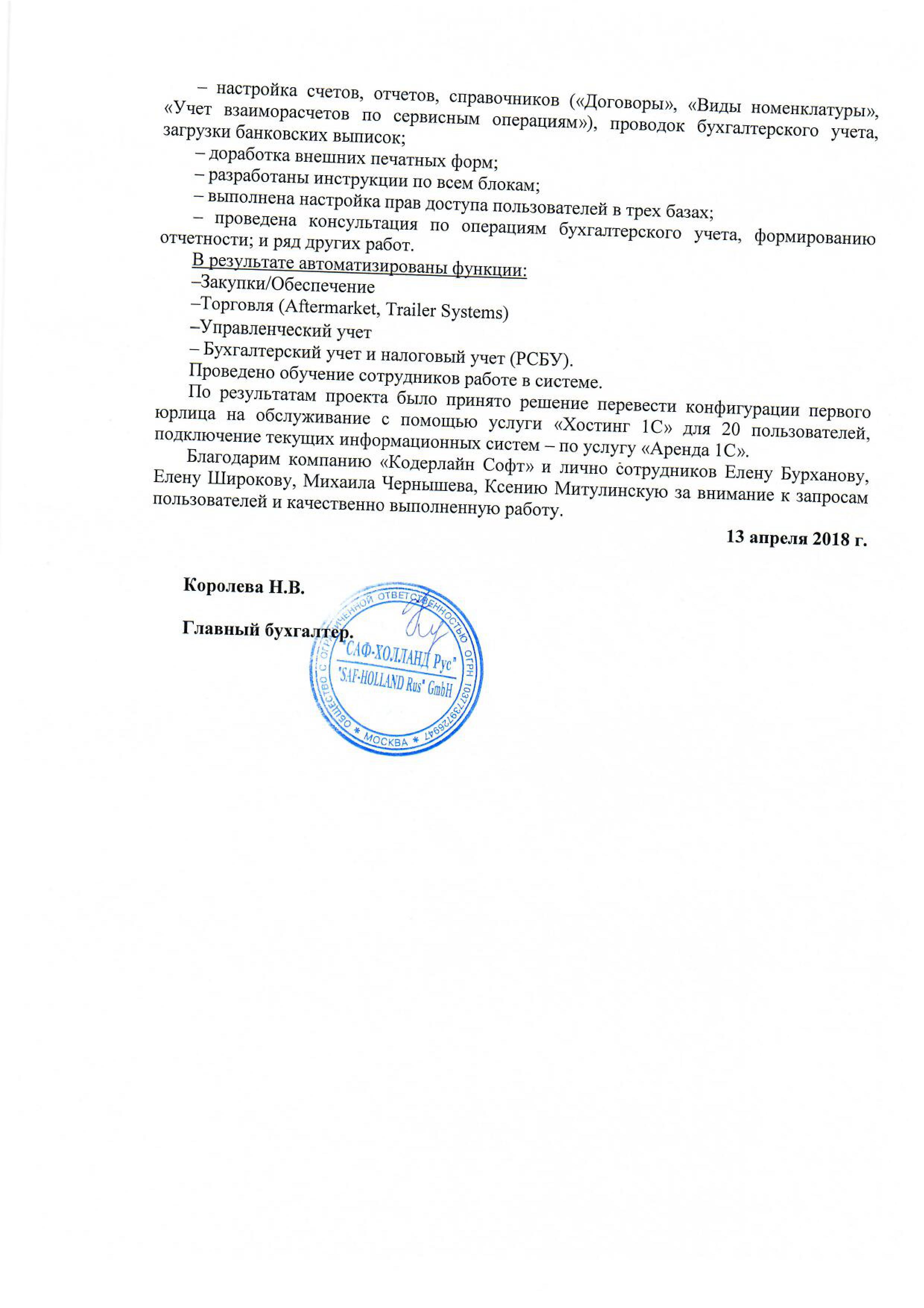 Королева Н.В., главный бухгалтер.